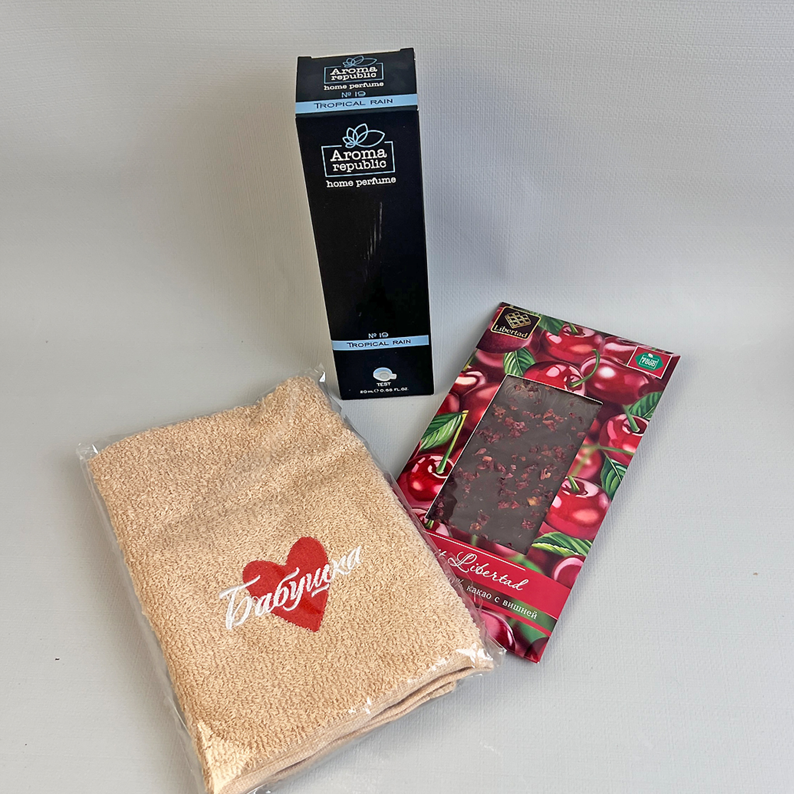 Подарочный набор "Сюрприз для бабушки" полотенце, аромадиффузор, шоколад арт. 69425